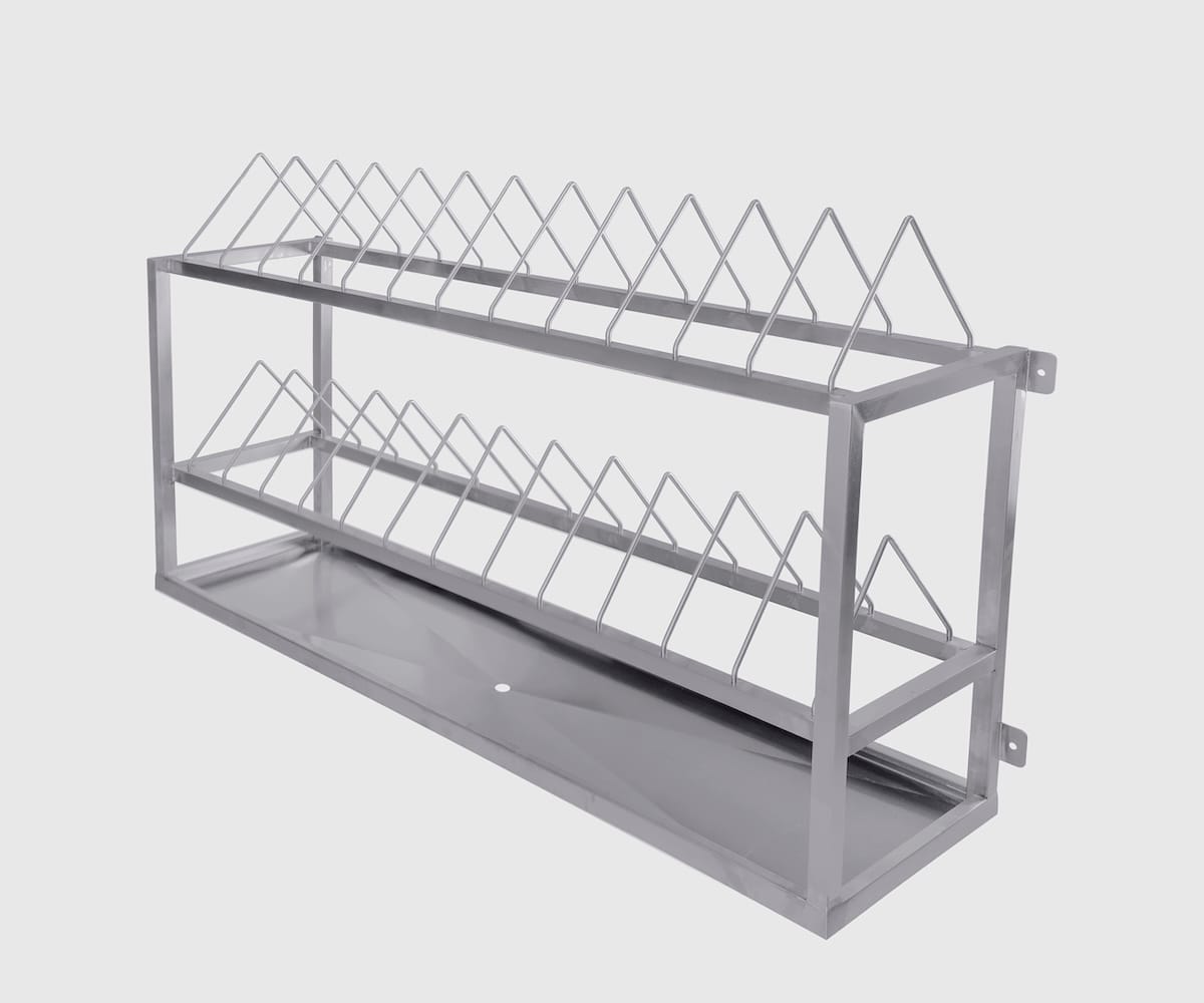 Ideal para cocinas con alto flujo de lavado, este escurridor está fabricado en acero inoxidable C18/C20 y cuenta con rejilla ventilada para un secado eficiente y ordenado de platos. Su diseño compacto permite integrarlo fácilmente a cualquier área de lavado. Disponible para fabricación personalizada.