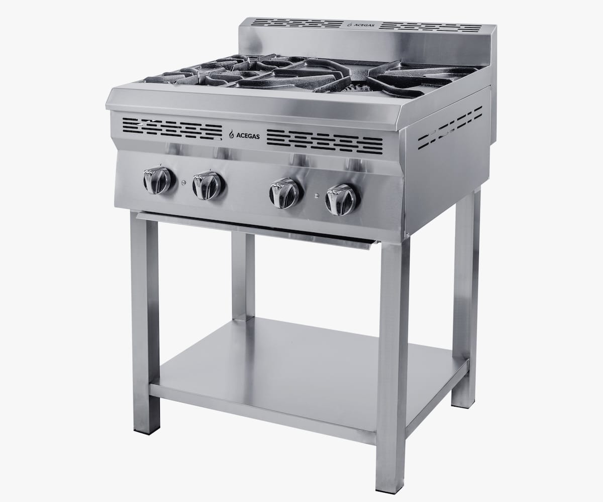 Fabricada en acero inoxidable C18/C20 con parrillas y quemadores de hierro fundido, resiste jornadas intensas y facilita la limpieza diaria. Sus dimensiones de 75 × 65 × 90 cm se adaptan a cocinas donde cada centímetro importa.